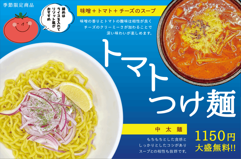2025年4月26日より、「トマトつけ麺」を期間限定で販売いたします。